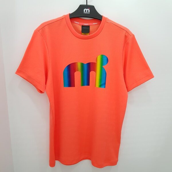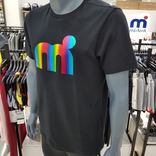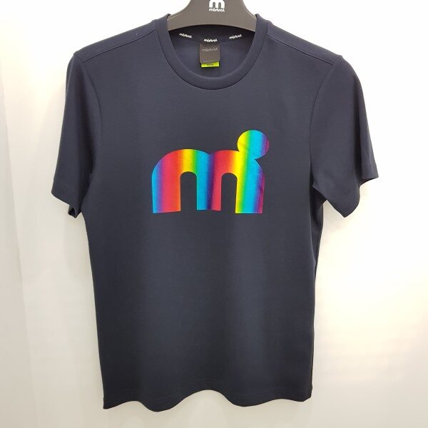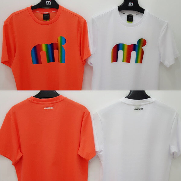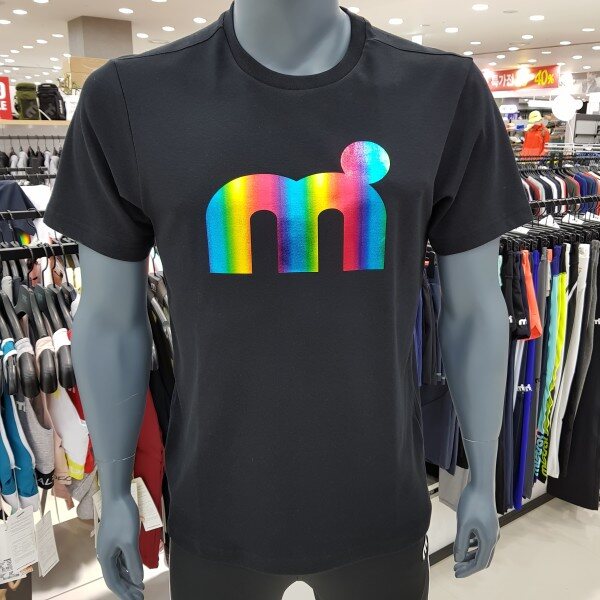 특양면 메쉬소재 사용으로 스포티함 가미, 뒷목부분 넥테잎을 적용하여 활동시 피부 닿는부분 최소화, 홀로그램 기법으로 엠닷 빅로고를 활용한 디자인 포인트 ,