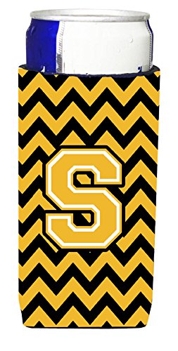 Letter S Chevron Black and Gold Ultra Beverage Insulators for slim cans CJ1053-SMUK