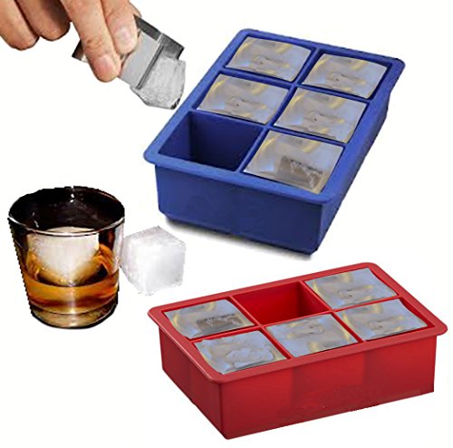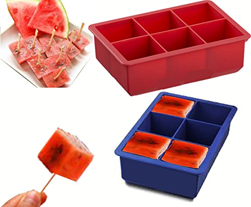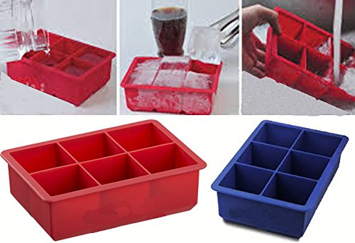Silicone 2 Inch Cube Mold Ice Cube Tray ,Set of 2, 1 Blue and 1 Red, 6.25 X 4.35 X 2 Inches,