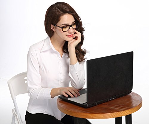 -. Feature : Computer glasses for women.2 Years Warranty And Friendly Customer Service / Blue light blocking glasses,can Blocking Reducing Screen Blue Light And Glare.Suitable for frequent use computer,TV,Tablet or mobile phone.Reduce harmful light damage to the eyes,such as Screen Blue Light and Glare,can protect your eyes when you read and decrease eyes fatigue and discomfort.In addition,you can make an eye doctor to replace with prescription lens,used as prescription glasses / High-grade flexible material frame,lightweight and durable comfortable to wear.Prescription glasses grade quality meticulous details.Metal spring hinges strong and durable,can adjust the curvature of the glasses to help face fit / Packaging includes hight quality glasses case and cleaning cloth,for storage and protection / Product size Lens Width: 52mm/2.0", Lens Height: 41mm/1.6", Bridge: 18mm/0.7", Temple Length: 140mm/5.5", Total Width: 130mm/5.1". Weight: 1 ounce/30g