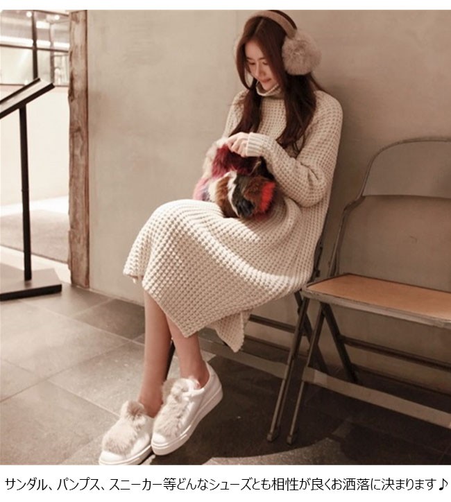 ワッフル編みでメリハリのあるオフタートルロング丈ニットワンピース♪ | |