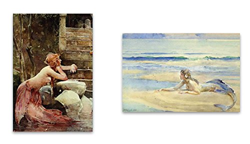 - Vintage Watercolor Mermaids Fridge Magnet Set - 2”x3” Rectangle Magnets featuring Beautiful Watercolor Paintings of a Coral Fin Mermaid with Red Hair and a Blue Tail Mermaid on the beach for Kitchen Art, Office Decor, Bird Lover Gift for Adults, Kids, Men & Women