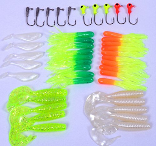 【내용】 ◆웜+지그 헤드 45set 낚시 도구:웜35,지그 헤드10,약45점의세트