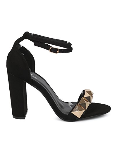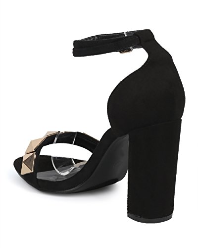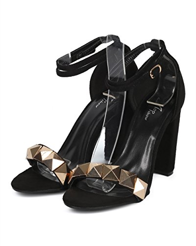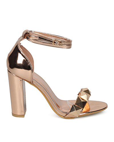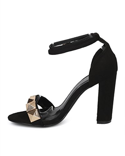 Women Studded Block Heel Sandal - Oversized Pyramid Stud Chunky Heel - Ankle Strap Dressy Weddi...