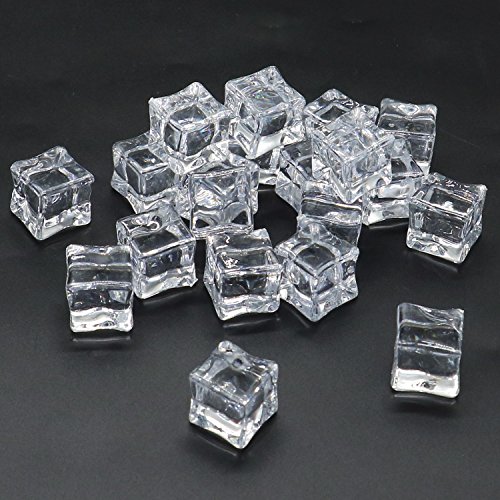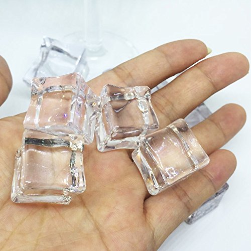 HUELE 20 Pcs Clear Square Acrylic Ice Cubes Fake Ice Cubes for Photography Props or Decorations, 0.8"