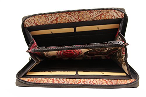 -. Binding : Apparel -. Brand : YL -. Department : womens -. Feature : 12 Credit Card and Multifunction Pockets / 1 Receipts Slots and Full length Zip coin pocket / 2 Full-length Side Slips under Card Slot / All zip around closure and Round Golden Logo on front / Size: 8 x 4 x 1.0 inches -. Model : YL-22 -. PackageQuantity : 1 -. ProductGroup : Apparel -. ProductTypeName : ACCESSORY -. Size : Medium -. Title : Women's Zip Around Genuine Leather Clutch Wallet Embroidery lace Purse