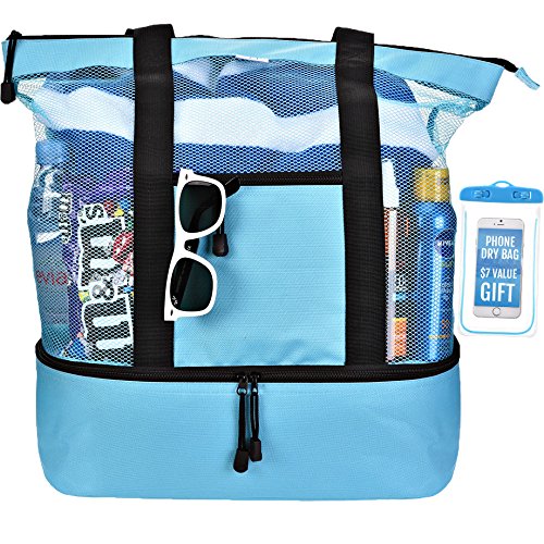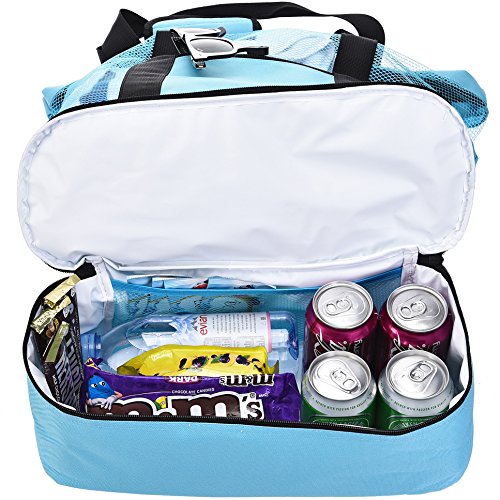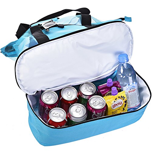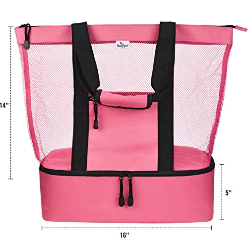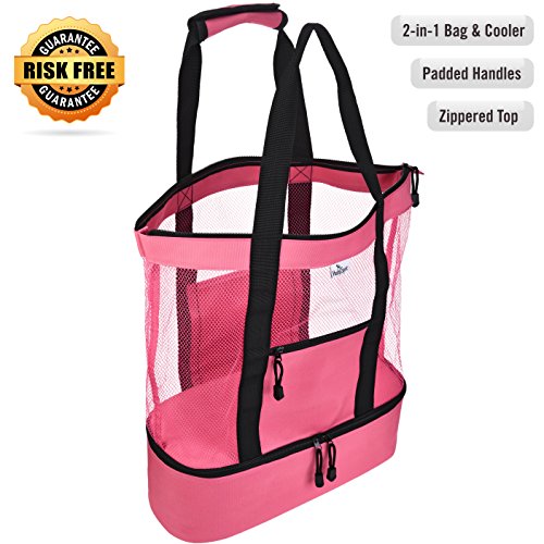 Insulated Picnic Cooler Compartment This mesh beach cooler tote bag features an insulated, zippered cooler compartment, which making it ideal for picnics, camping, parks, road trips, BBQs, vacations and more!