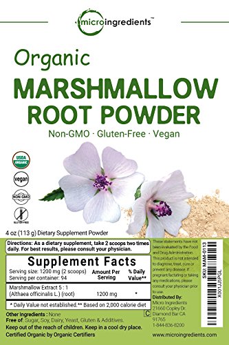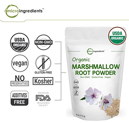 -. Title : Premium Pure Organic Marshmallow Root Powder, 4 oz. Non-GMO, Support Healthy Gut & Lung Function