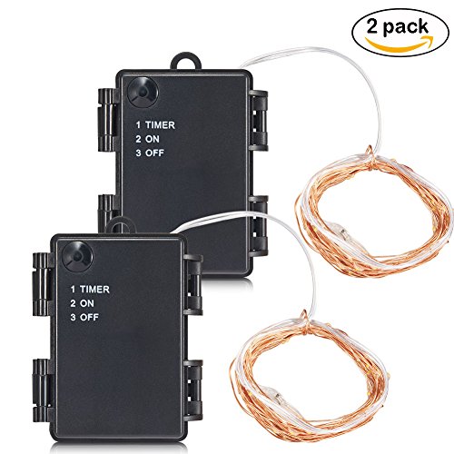 Accmor Led String Lights with timer, 3xAA Battery Operated Lights Set for Christmas, Bedroom Indoor Outdoor Decorations, 16.4ft 50 Lights (2 Pack, UL certified, Warm White )