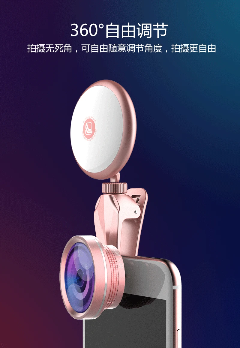 Feature:Phone Camera Lens 360 LED 9-Level Dimmable Rechargeable Clip