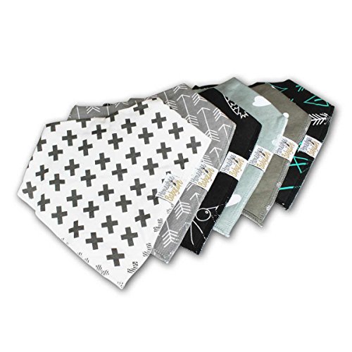-. Title : Pack of 6 Organic Baby Bandana Drool Bibs in Grays and Greens Soft and Absorbent to Protect Your Baby 9" x 8"