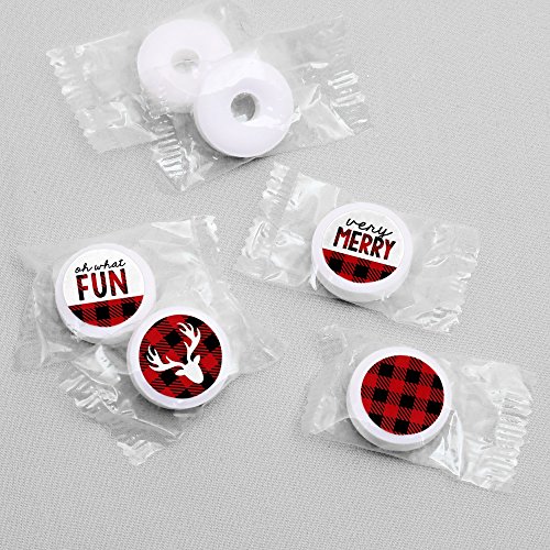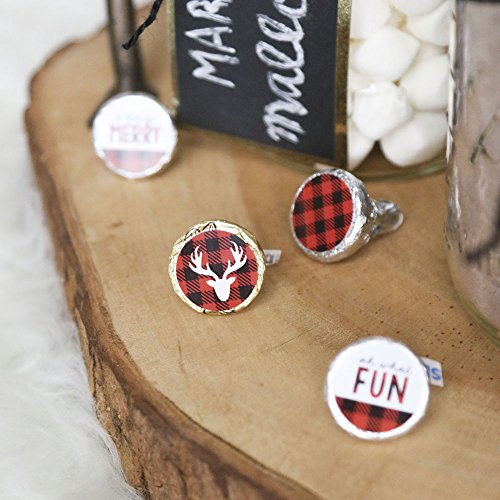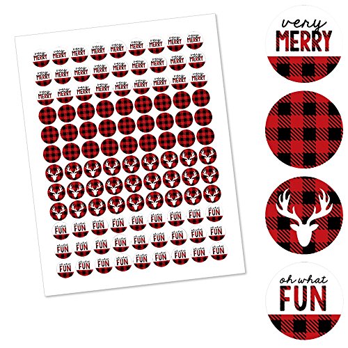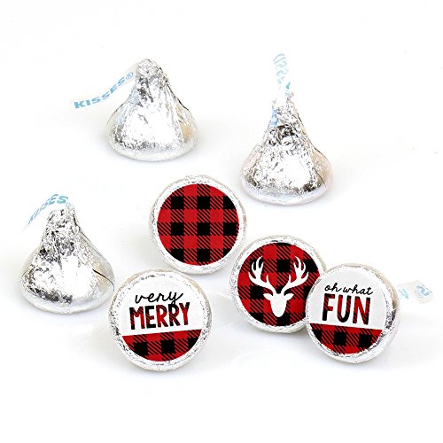 Prancing Plaid - Christmas & Holiday Buffalo Plaid Party Round Candy Sticker Favors - Labels Fit Hershey’s Kisses (1 sheet of 108)