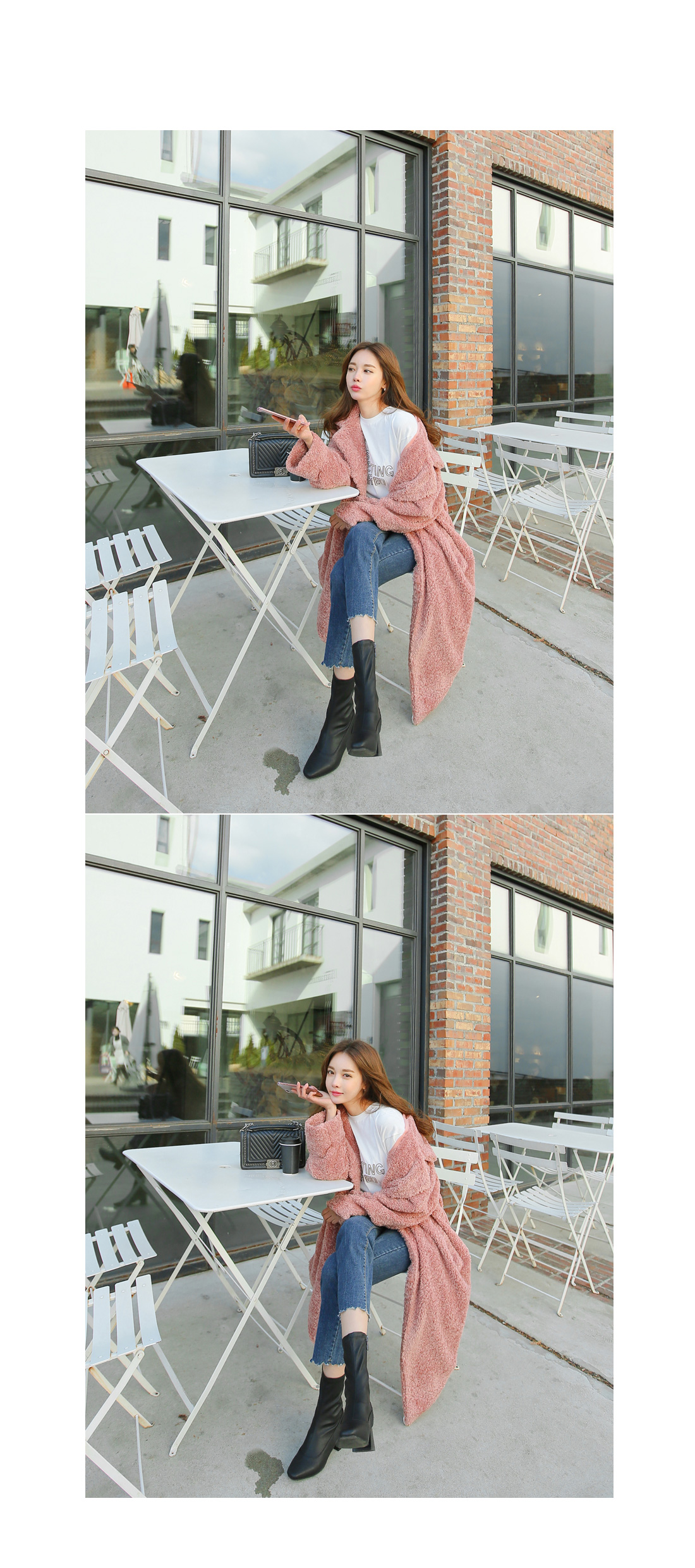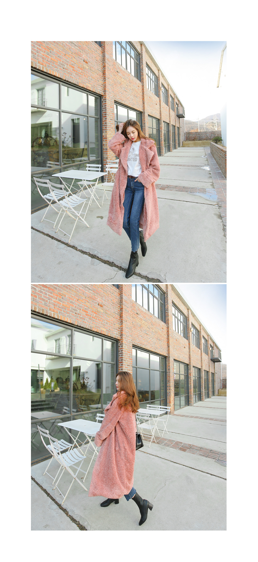 겨울 내내 따뜻하게 즐기기 좋은 포근한 느낌의 롱 코트 아이템이에요.