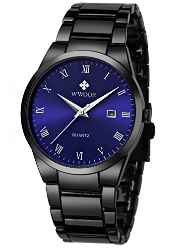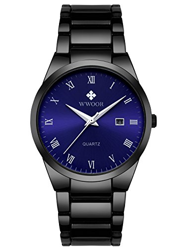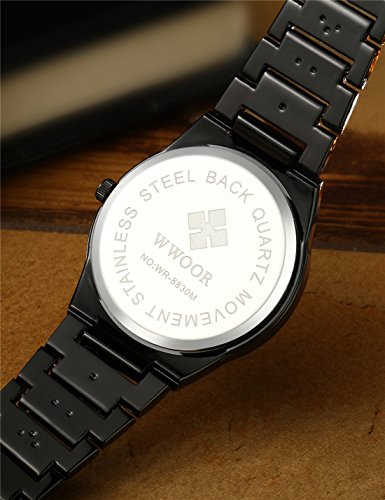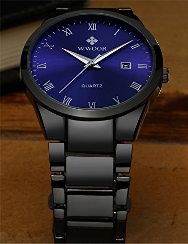 -. Title : WWOORメンズ時計大きなダイヤル自動日付ブラックステンレススチールバンドクォーツ腕時計8830