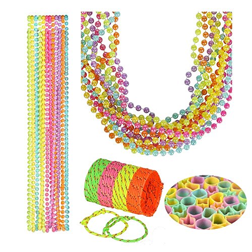 32 Friendship Bracelets, 12 Colorful Pastel Fashion Beads (Colors will vary), 8 Rainbow Slinkies, & ONE Butterfly Note Pad With Pen (Colors will vary)