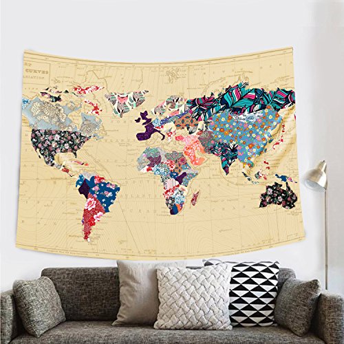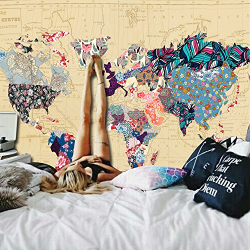 This world map tapestry colorful medieval tapestry can be used for a wall hanging, a table cloth, a bedspread, Bedding , Bed cover, picnic blanket, beach towel, yoga mat, sofa cover, couch cover, furniture throw, curtains, altar cloth, hung from the ceiling, home decor, and more. FEATURES: The colors are vivid and the pattern will probably fit in most places. It's not too flimsy - The material is solid, the edges are finished, it isn't too thick or thin (though I suppose that depends what you want to use it for. It is a great size, has vibrant colors, and looks great on bedroom or dorm room wall! ATTENTION PLEASE: Please note that slight color difference should be acceptable due to the light and screen. Dry Cleaning Or Cold Water Wash Washing Instructions: 1. Wash in Cold Water. Hands washed. Machine-washable; 2. Do not use chlorine bleach. PACKAGED INCLUDED: 1 Piece World Map Tapestry. CLICK THE YELLOW 'ADD TO CART' BUTTON ABOVE to send it to your family, friends, guests. It absolutely will become the best gift what they receive. 0