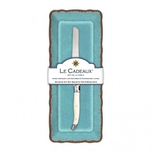 -. Title : Le Cadeaux Baguette Tray with Bread Knife Gift Set-Antiqua Turquoise.