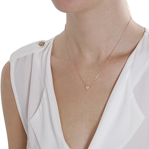 This dainty chain necklace features a tiny heart pendant suspended from a fine cable chain. It is perfect for everyday wear, or to give as a token of love or friendship to someone special. The perfect sentimental gift for your wife, girlfriend, sister, daughter, mom, aunt, co-workers, or best friend, it can worn by itself or layered with other small charm necklaces. Brushed finish and lobster clasp closure. 16 inches long. Pendant: 0.28 inch.