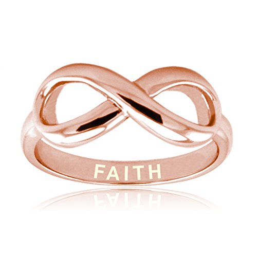 -. Binding : Jewelry -. Brand : Tioneer -. Department : womens -. Feature : An incredibly honorable faith inscribed into a lasting silver ring, for all the loved ones out there. / Genuine .925 grade rose gold plated sterling silver. / Large infinity symbol, with "Faith" engraved in bold letters. Band is standard fit and approx. 2.15mm wide. / Infinity sign dimensions: 8mm x 17mm / Comes with complimentary gift box. -. Label : Tioneer -. Manufacturer : Tioneer -. Model : 00017-ER51022RG -. MPN : 00017-ER51022RG -. PartNumber : 00017-ER51022RG -. ProductGroup : Jewelry -. ProductTypeName : FASHIONRING -. Publisher : Tioneer -. Studio : Tioneer -. Title : Rose Gold Sterling Silver Faith Engraved Infinity Ring