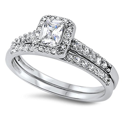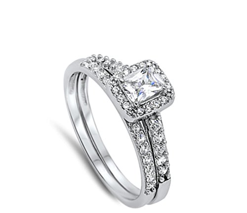 -. Title : Wedding Set White Halo Unique Ring New .925 Sterling Silver Band Sizes 5-10