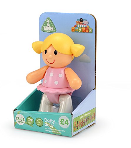 -. Binding : Toy -. Brand : Early Learning Centre (ELC) -. EAN : 5050048276290 -. Feature : Designed with multiple auditory and tactile responses to engage children. / Employs the creativity of young minds with tons of role play possibilities! / Cheerful doll is perfectly sized for young hands. / Great for play at home or on-the-go, and can be cleaned with a damp cloth. / Package includes (1) doll. Ages 12 months and up. -. IsAdultProduct : 0 -. Label : International Playthings -. Manufacturer : International Playthings -. Model : EC137319 -. MPN : EC137319 -. PackageQuantity : 1 -. PartNumber : EC137319 -. ProductGroup : Toy -. ProductTypeName : TOYS_AND_GAMES -. Publisher : International Playthings -. Studio : International Playthings -. Title : Early Learning Centre Toybox Dotty Dolly Baby Toy - Auditory and Tactile Interaction For Children -Engages and Employs Creativity - For On-The-Go or At-Home Play - Ages 12 Months and Up -. Warranty : No Warranty