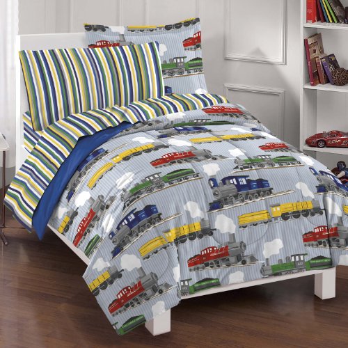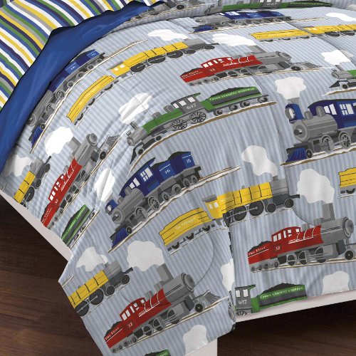 Dream Factory Trains Ultra Soft Microfiber Boys Comforter Set, Blue, Full