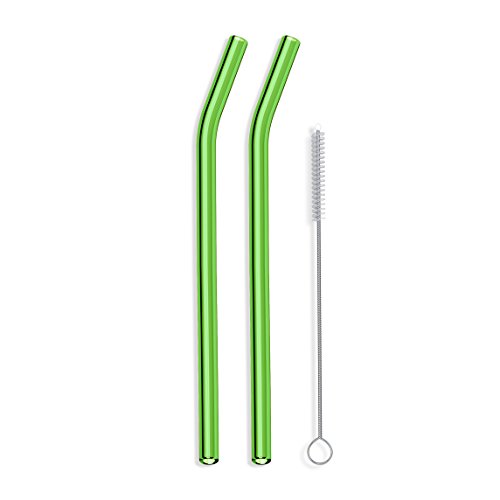 Hummingbird Glass Straws Green Bent Combo 9 in x 9.5 mm 2 Pack With Cleaning Brush