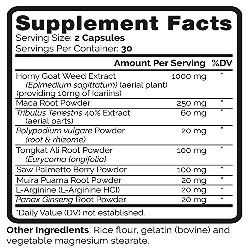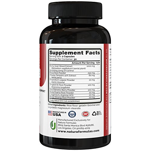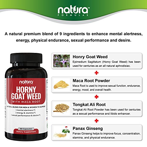 ✚ Increase sexual performance or your money back - Our Natura Horny Goat Weed Complex contains a natural premium blend of 9 ingredients, including Maca Root Powder, Tribulus Terrestris, Polypodium vulgare powder, Tongkat Ali Root Powder, Saw Palmetto Berry Powder, Muira Puama root Powder, L-Arginine and Panax Ginseng Root Powder. Guaranteed to increase your sexual performance & desire, with the added benefits of boosting your energy & focus throughout the day.
