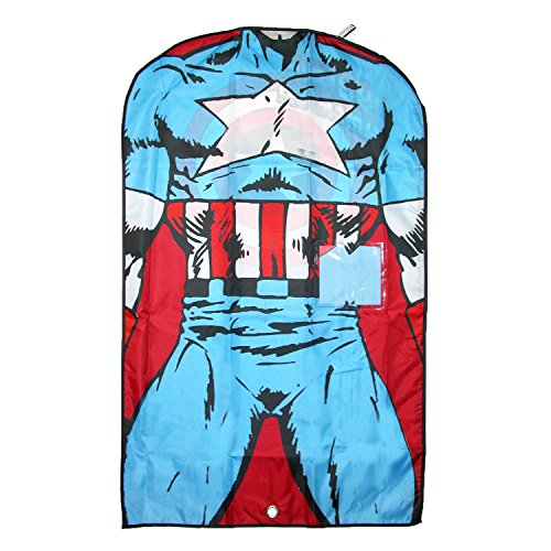 -. Brand : BB Designs -. Color : Multicoloured -. Department : unisex-adult -. Feature : Measures 23 X 39 inches / Front and back Captain America / 100% polyester / Side zip garment suit bag / Keeps clothing protected and free of dirt and dust while traveling -. Label : BB Designs -. Manufacturer : BB Designs -. PackageQuantity : 1 -. ProductGroup : Apparel -. ProductTypeName : LUGGAGE -. Publisher : BB Designs -. Size : One Size -. Studio : BB Designs -. Title : BB Designs Captain America Garment Suit Bag