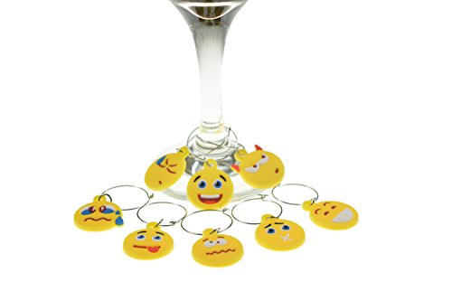 -. Brand : PrestigeHaus -. Color : Yellow -. EAN : 0041898905510 -. Feature : Made from Soft Flexible Rubber / Set of 8 Charms Per Purchase - so you'll always know exactly which glass is yours / Celebrate your unique style with these cute wine charms / Set comes with 8 charms - Emoji Inspired Designs / Soft Material - No longer worry about damaging your wine glasses -. Label : PrestigeHaus -. Manufacturer : PrestigeHaus -. ProductGroup : Kitchen -. ProductTypeName : KITCHEN -. Publisher : PrestigeHaus -. Studio : PrestigeHaus -. Title : Emoji Wine Glass Charms - Set of 8 - Emoji Inspired Designs - Tags to Mark Your Drinks … -. UPC : 041898905510