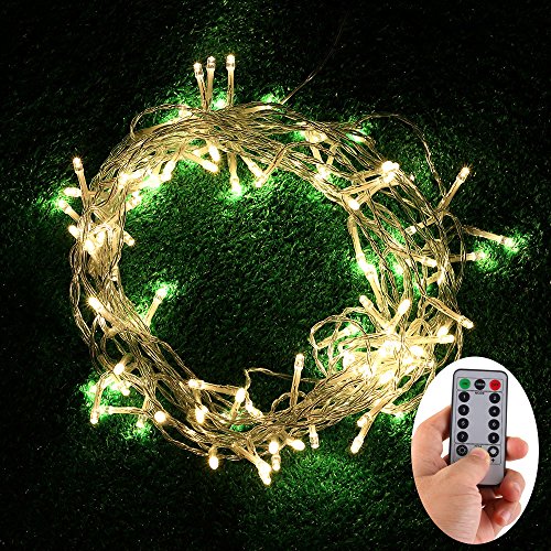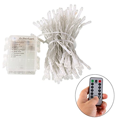 EchoSari 100 Leds Outdoor LED Fairy String Lights Battery Operated with Remote (Dimmable, Timer, 8 Modes) - Warm White