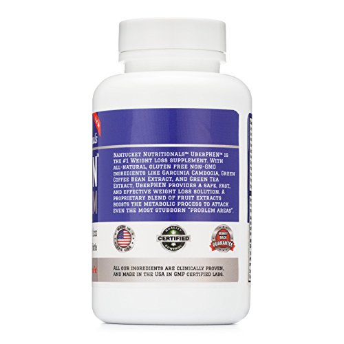 -. Binding : Health and Beauty -. Brand : Nantucket Nutritionals -. Color : White -. EAN : 0030915552400 -. Feature : NO RISK TRIAL - Money Back Guarantee! If you aren't completely satisfied, email us within 60 days of your purchase for a COMPLETE REFUND. No need to return the product. NO shipping CHARGES, No costs, no BS! / UberPHEN is formulated to increase metabolism and energy, promote fat burning, and support weight loss. Our formula combines the most effective weight loss supplements available including Garcinia Cambogia, Green Coffee Bean Extract, and Green Tea Extract with a unique blend of fruit extracts to deliver the most powerful weight loss aid on the market. / Get the lean, slim, and slender body you want now. Powerful appetite suppressants and fat burning formula helps you lose weight fast. Thermogenesis converts calories to heat through metabolic stimulation. When metabolic rates rise, heat is generated, increasing energy to promote the breakdown of fat cells / UberPHEN is the ONLY weight loss solution that offers FAST and INEXPENSIVE results. Compare to some products @$24.99 per bottle or even @$39.99! / Made in the USA in GMP certified labs with certified ingredients -. IsAdultProduct : 0 -. Label : TopSupp, LLC -. LegalDisclaimer : Intended for people 18 & over -. Manufacturer : TopSupp, LLC -. PackageQuantity : 1 -. ProductGroup : Health and Beauty -. ProductTypeName : HEALTH_PERSONAL_CARE -. Publisher : TopSupp, LLC -. Size : 60 Count -. Studio : TopSupp, LLC -. Title : BEST Natural Weight Loss Product, Appetite Suppressant, Fat Burner & Metabolism Booster! Garcinia Cambogia Extract With Green Tea and Green Coffee Bean Extracts for a Complete Diet Pill -. UPC : 030915552400