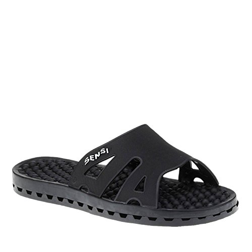 -. Feature : Sensi Sandals' Waterproof Slide Recovery Spa Sandal WITH BUMPS / Patented design has built-in water drainage and air circulation system for clean, dry feet / Massaging, therapeudic bubbles on footbed help stimulate nerve endings, increading blood flow to other parts of the body / Anti-bacterial, anti-microbial material promotes clean, healthy feet / Non-marking, long-lasting, non-skid soles. Easy to wash. World's Best Spa Sandal! MADE IN ITALY