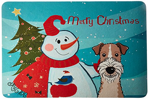 Caroline's Treasures BB1867JCMT Snowman with Wire Haired Fox Terrier Kitchen or Bath Mat, 24 by 36", Multicolor