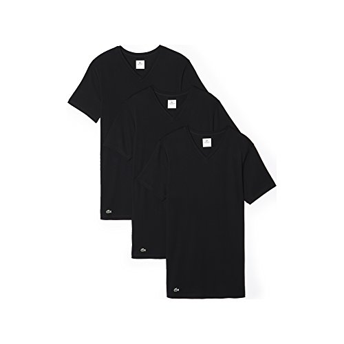 Lacoste Men's 3-Pack Essentials Cotton V-Neck T-Shirt, Black, Medium