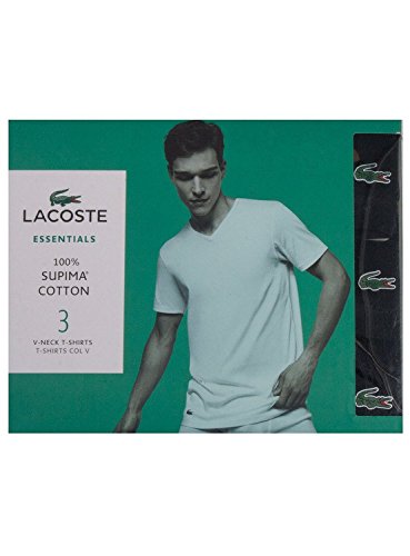 Lacoste Men's 3-Pack Essentials Cotton V-Neck T-Shirt, Black, X-Large
