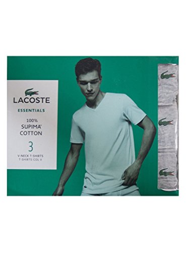 Lacoste Men's 3-Pack Essentials Cotton V-Neck T-Shirt, Grey, Large