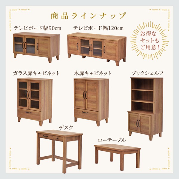 こちらは「テレビボード 4点セット(テレビボード+ローテーブル+キャビネット×2)」の販売ページです。木目調ナチュラルリビング収納シリーズ