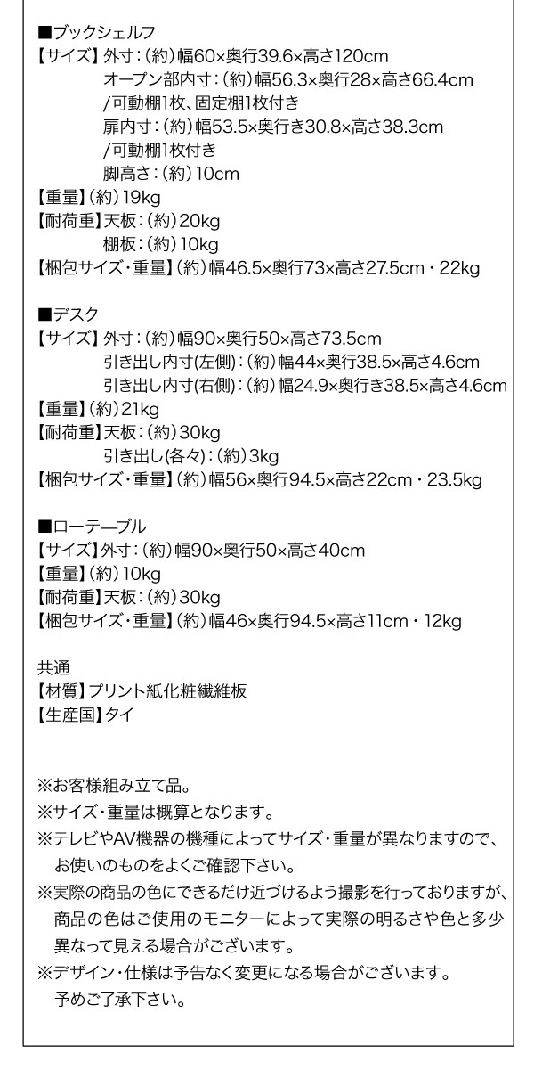 外寸:(約)幅119.9×奥行39.6×高さ51.9cm