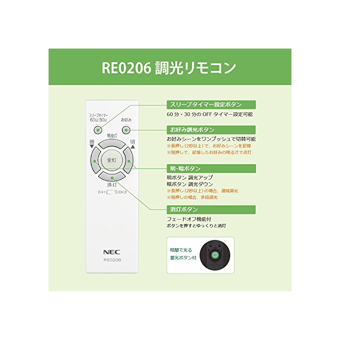 fade 오프 기능,슬립 타이머(30 분60분) 주문 조광버튼:주문 씬을 원 푸쉬로 교환 가능(장누르기(3 초이상)나오고, 주문 씬을 기억.단누르기에,기억한 좋아하는 밝기로 점등)