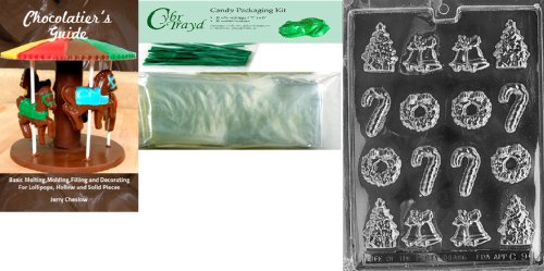 Cybrtrayd B.S. Assortment Chocolate Mold with Chocolatier's Bundle of 25 Cello Bags, 25 Green Twist Ties and Chocolatier's Guide