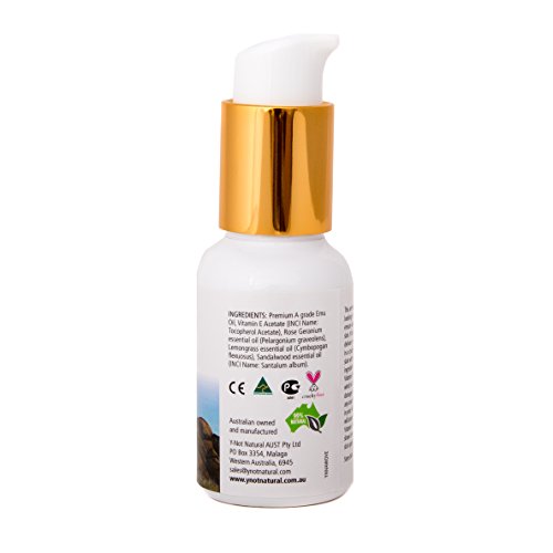 most powerful natural ingredients on earth to correct sun damage and minimize the effects of aging on your skin. Our formula combines the ultra-hydrating and deeply penetrating properties of ultra-pure Australian emu oil with the anti-oxidant power of Vitamin E. Lemongrass, Geranium, and Sandalwood Essential Oils rejuvenate and energize the skin, while providing a therapeutic, aromatic experience.