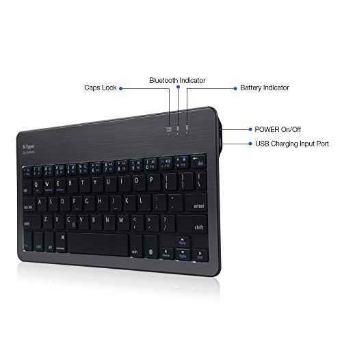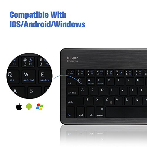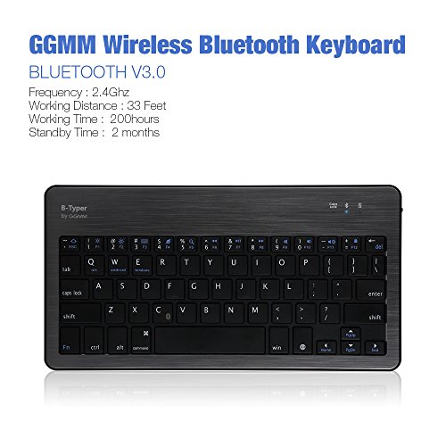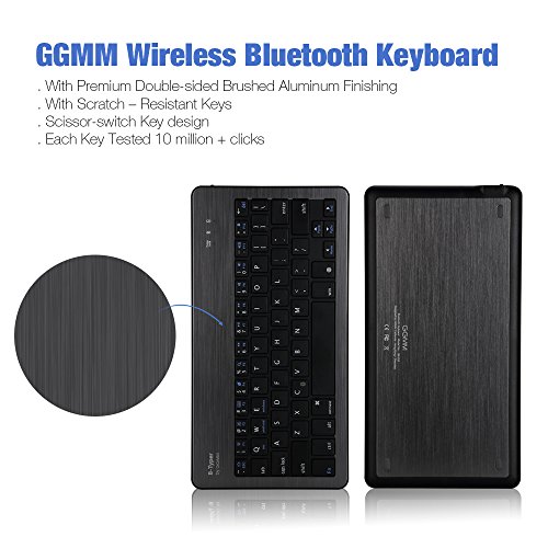GGMM® B-typer Lifetime Warranty Wireless Bluetooth Keyboard Ultra-slim & Compact Aluminum Keyboard for iOS/ OSX/ Windows/ Android 3.0 and above/ iPad/ iPhone/ Samsung Galaxy Tab/ Google Nexus/ With Built-in Rechargeable Lithium Battery (Gunmetal/Blac