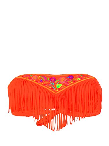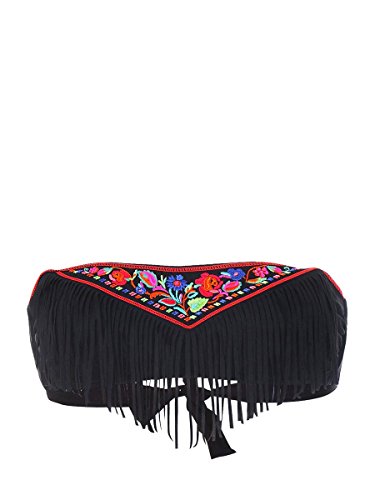 MAILLOT DE BAIN FEMME BANANA MOON - Bandeau - Tissu mat noir - Franges et broderies vertes, roses, orange et violette sur la partie superieure du bandeau - Coussinets amovibles en mousse - Liens a nouer dans le dos - Bretelles amovibles - Petite plaque en metal inoxydable Banana Moon sur le cote gauche - Composition : 90% Polyamide 10% Elasthanne Carla-Bikini adore : Le style sexy et girly pour un bandeau a croquer !