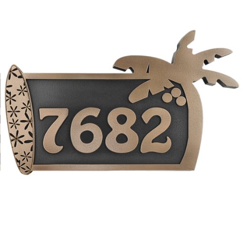 -. Title : Surfboard Address Plaque 16x9 - Raised Bronze Metal Coated Sign