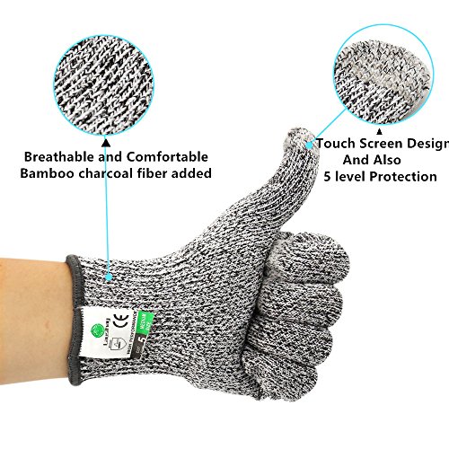 - Professional Cut Resistant Performance: Made of UHMWPE and High strength stainless steel wire, EN388 level 5 cut resistance, being 4 times stronger than leather. Lightweight, resistant to cut, highly durable, protecting your hands from scrapes and cuts.