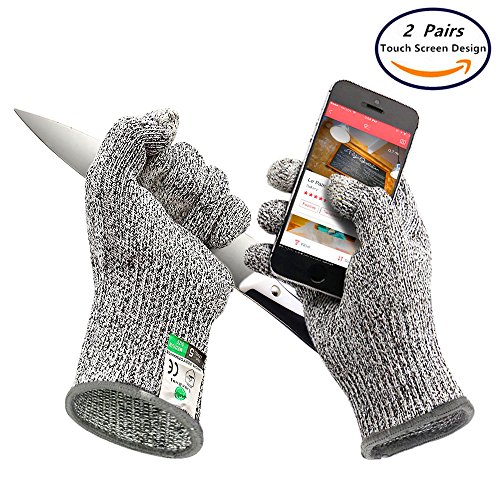2 Pairs Touch-Screen Cut Resistant Gloves, Safety Gloves For Cooking- High Performance Level 5 Protection, Food Grade, Kitchen Glove for Cutting, Slicing, machine, Wood Carving and Yard Work(Medium)