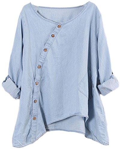 -. Feature : Machine wash or hand wash / Fits US size 0-10; Bust: 45.6", Shoulder Width: 16", Upper Arm: 14.9", Length: 26.7", Hem: 55.9" / Irregular hem and buton make this blouse different, pull up sleeve / Button-up design shirt. Newest update design / Good Gift for wife,Girlfriend or Daughter