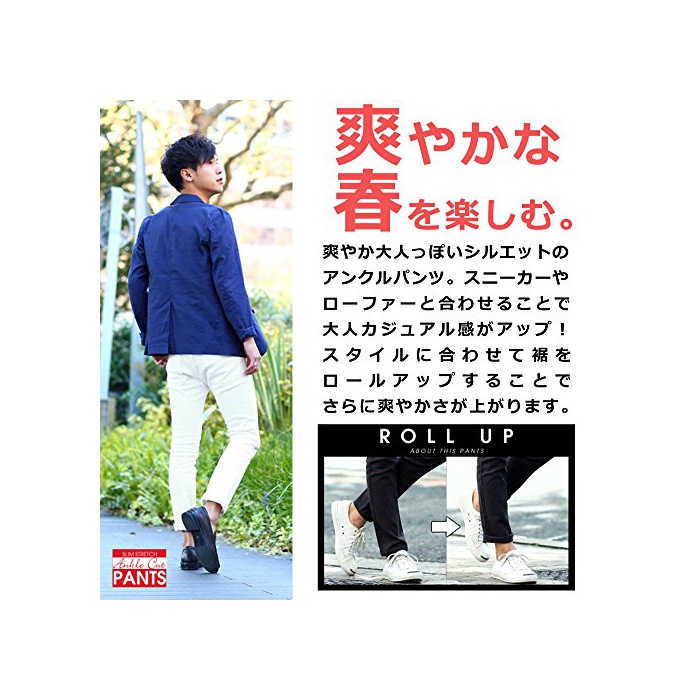 원본상품명: インプロブス アンクルパンツ チノパン スリム ストレッチ クロップドパンツ メンズ オフホワイト M サイズ
