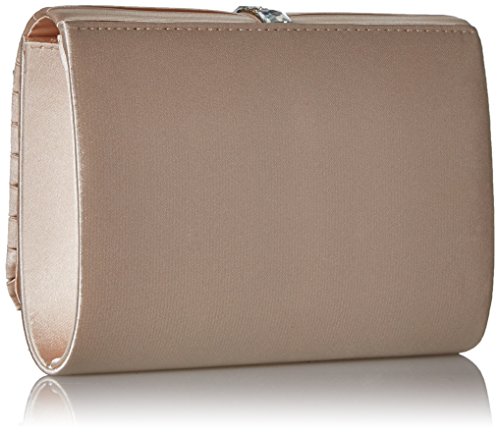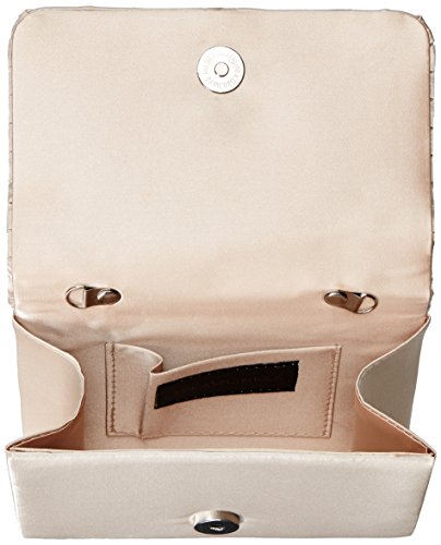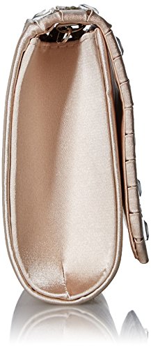 Dress to impress with the Jessica McClintock katie satin clutch with a drop in chain strap and back wall slip pocket. Rhinestone details on the flap of this clutch will have you shining brighter than any star in the sky.Feature